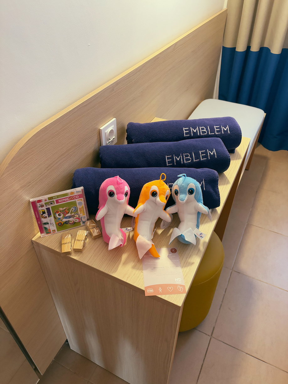 Meidän hotelliksi valikoitui perheystävällinen Blue Star HD Parque Cristobal Gran Canaria Emblem, joka sijaitsee Playa de las Inglésin rauhallisessa osassa. Hotellilla on uima-altaita, vesileikkialue ja pallokenttä tennikseen ja kori-/lentopalloon. Suurimpiin huoneisiin mahtuu jopa kuusi henkilöä. Kaikissa huoneissa on aurinkotuolit patiolla, ja joissakin on oma puutarha.